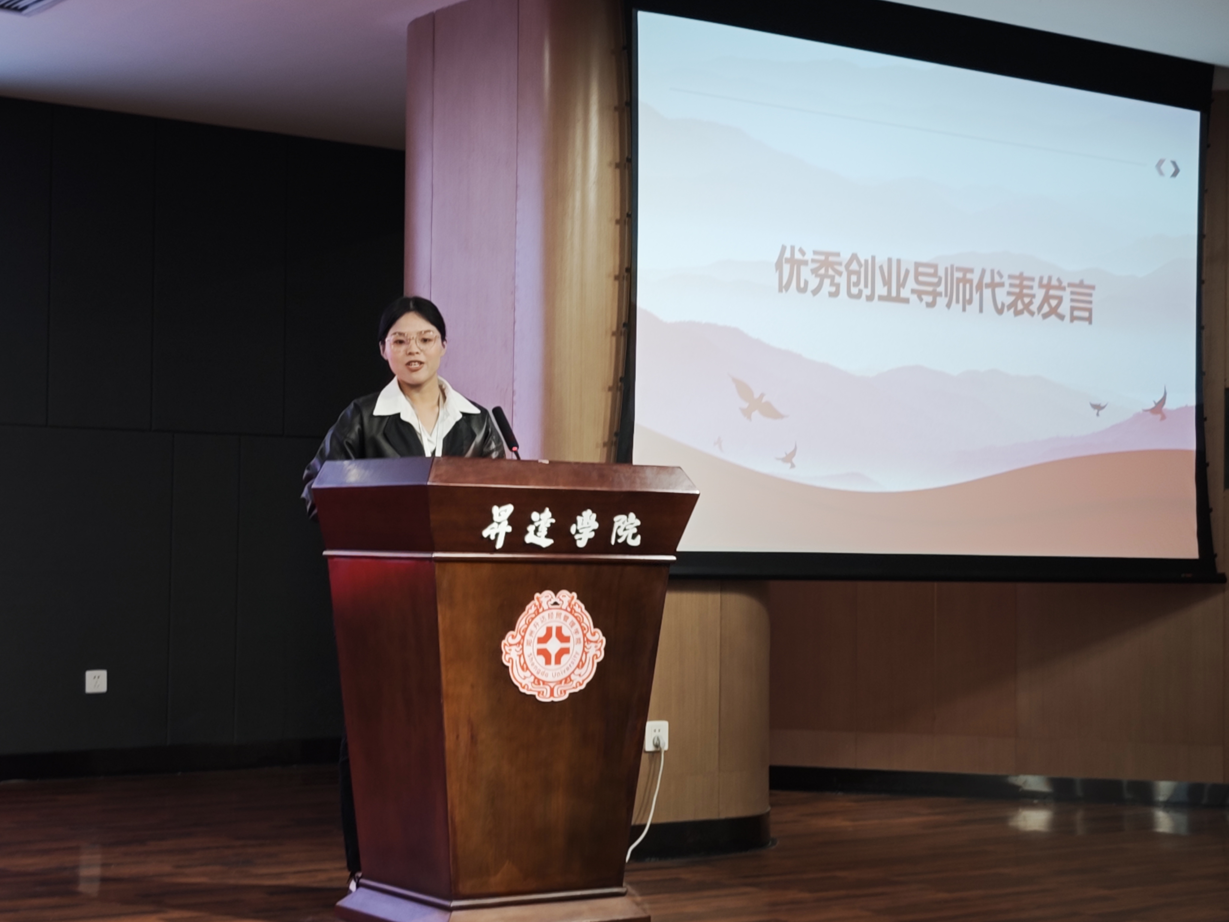 接下来,获奖导师代表贺莹莹老师上台进行了发言,贺莹莹老师以“钧瓷”项目为例,分享了创新创业项目的核心经验,她认为,双创教育不仅是传授技能,更是点燃学生勇气、培养实干精神的过程,并鼓励同学们在“领航计划”中勇于尝试,让有价值的创意生根发芽。