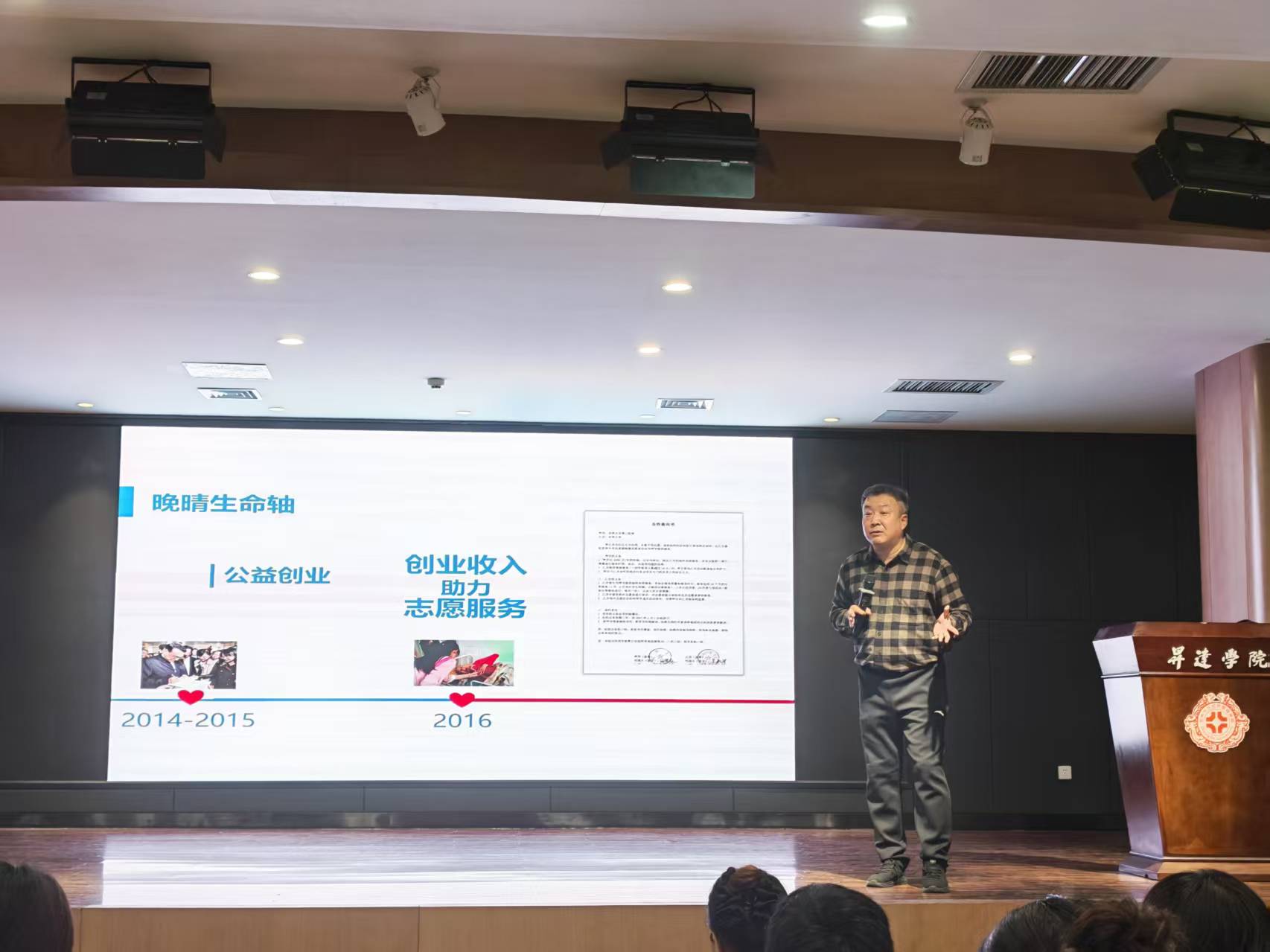 随后,张金山教授围绕“大学生创新创业大赛”与“创新创业训练计划”两大核心主题展开深度分享。在案例解析环节,他以吉林大学白求恩晚晴志愿者协会的项目为典型范例,生动阐释了项目创新中“善于挖掘”的关键意义——无论是挖掘社会需求、校园痛点,还是挖掘自身专业优势,都是打造优质双创项目的起点。在时代背景解读部分,张教授系统梳理了“Internet +”“创业”等核心关键词的内涵变迁,从早期的技术驱动到如今的“技术+场景+需求”融合,清晰揭示了创新驱动发展的现实路径;同时,他还深入解读了国家近年来支持大学生创新创业的政策体系,从资金扶持、平台搭建到学分认定、就业帮扶等方面,让师生全面了解双创实践的政策红利。
