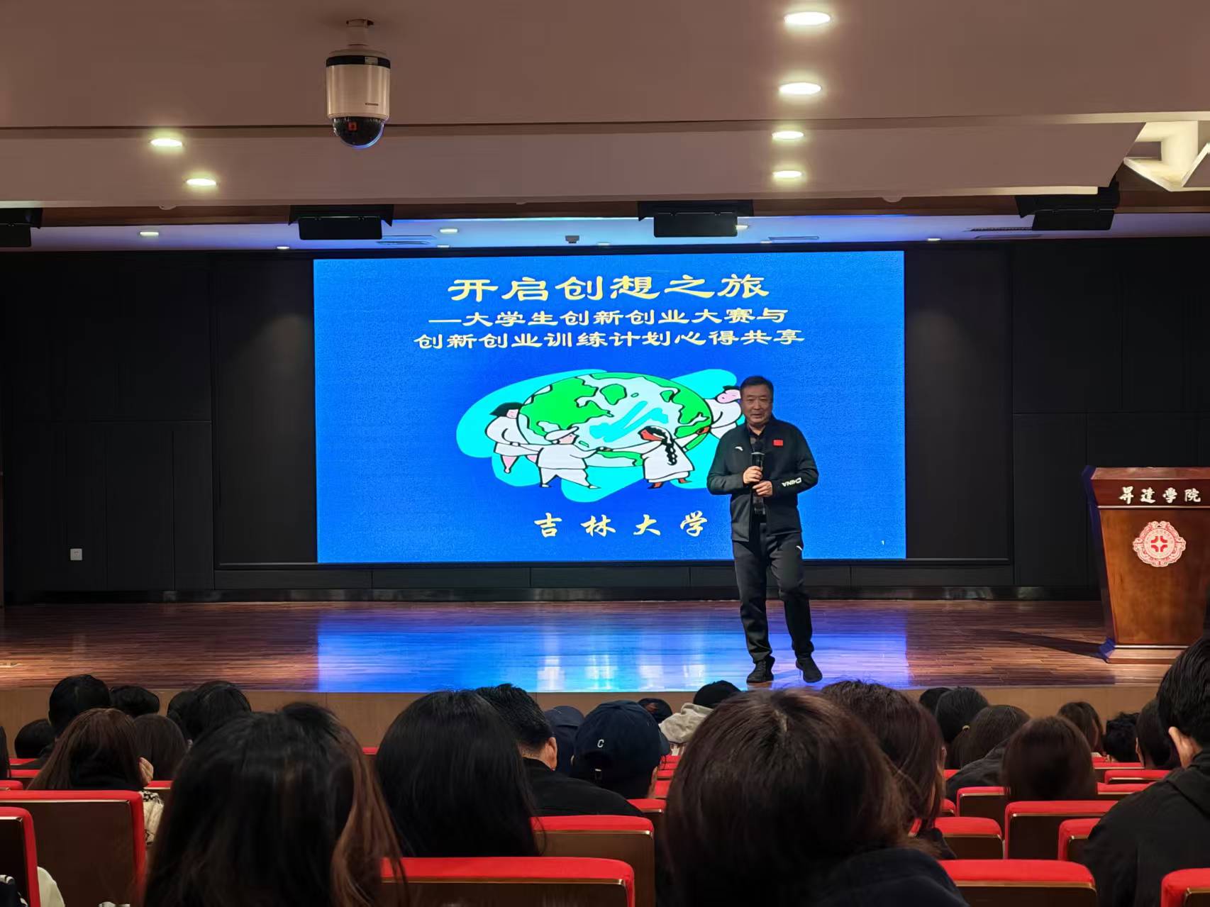 2025年10月17日,双创大讲堂现场气氛热烈,座无虚席。两百余名师生齐聚一堂,共同参与由吉林大学创新创业教育学院副院长张金山教授主讲的《开启创想之旅——大学生创新创业大赛与创新创业训练计划心得共享》专题讲座。