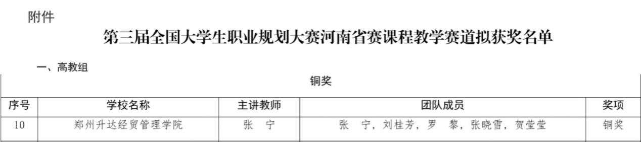 2025年11月22日至23日,由河南省教育厅主办,河南经贸职业学院、河南省大中专学生就业服务中心承办的第三届全国大学生职业规划大赛河南省赛教学赛道决赛在河南经贸职业学院隆重举行。我校创新创业教育学院教师张宁、刘桂芳、罗黎、张晓雪、贺莹莹组成参赛团队入围决赛,与全省100支优秀教学团队、600余名教师同台竞技,全方位展现我校职业规划与就业教育教学成果。