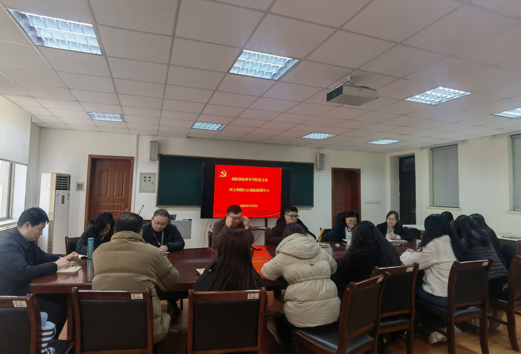 会上,王铮书记传达了学校机关党委关于开展树立和践行正确政绩观学习教育的部署要求,结合学院创新创业教育工作实际,对支部学习教育工作作出具体安排。他指出,2026年是“十五五”规划开局之年,开展此次学习教育意义重大,全体党员要提高政治站位,切实把思想和行动统一到学校党委工作要求上来,以实际行动坚定拥护“两个确立”、坚决做到“两个维护”。